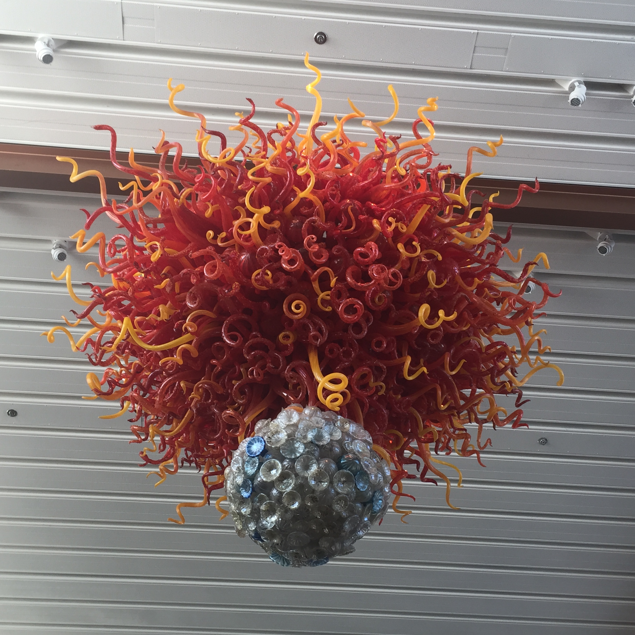 With Chihuly’s growing fame and popularity, this was an excellent investment. And safe from theft! The chandelier has over one thousand hand-blown glass pieces weight over 2,000 pounds. Even cleaning the chandelier requires special arrangements.