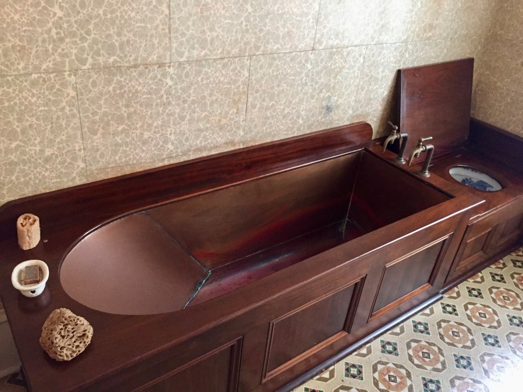 The Gallier House has unusually modern innovations, including indoor plumbing with hot and cold water and a double skylight. Three of his unmarried daughters lived here until 1917, and I can see why. They had a much better bathroom as compared to what was the norm back then.
