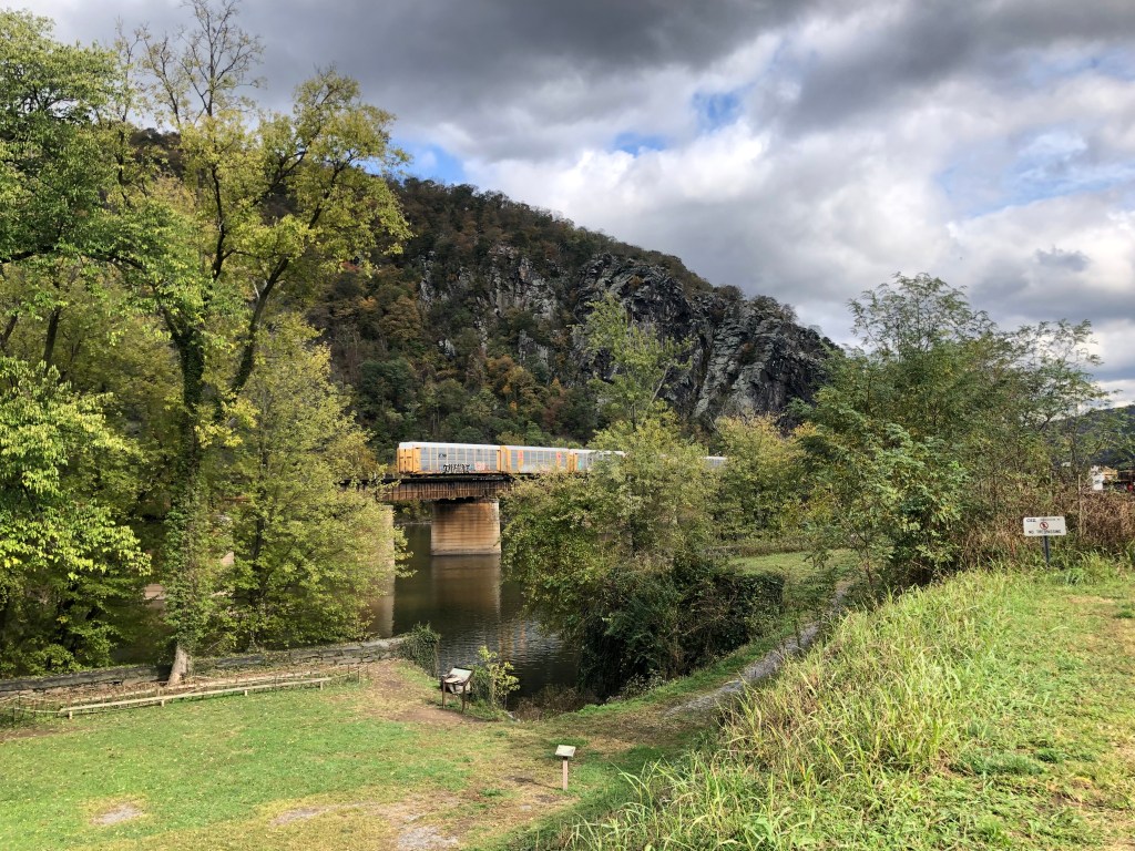Today, you can stroll along a combination walkway next to the railroad bridge above the Potomac River to Maryland. If you walk across the bridge, you have also been on the Appalachian Trail. Harpers Ferry is called the trail’s psychological midpoint, so if you are up for a longer hike, now’s the time to decide. If you keep going either direction, please add a comment to this blog to tell us about it!
