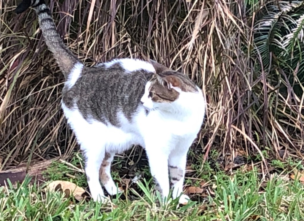 Tas surveyed the neighborhood and his house across the cul-de-sac and flicked his tail as if preparing to pounce.
